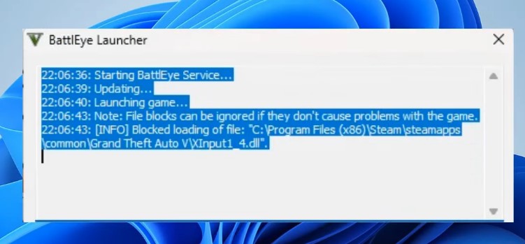 Caricamento bloccato del file XInput1_4.dll, GTA V si blocca durante il caricamento – BattlEye Launcher