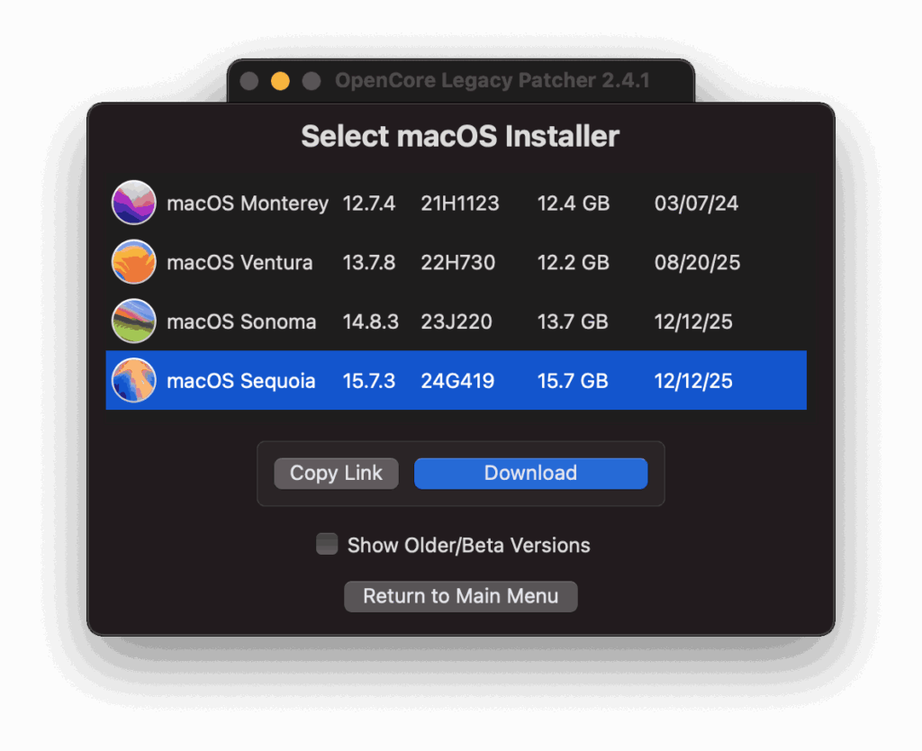 • Scarica OpenCore Legacy Patcher(Download)