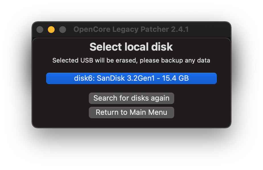 Dopo il riavvio, OpenCore Legacy Patcher avrà l’accesso completo al disco necessario per funzionare correttamente.