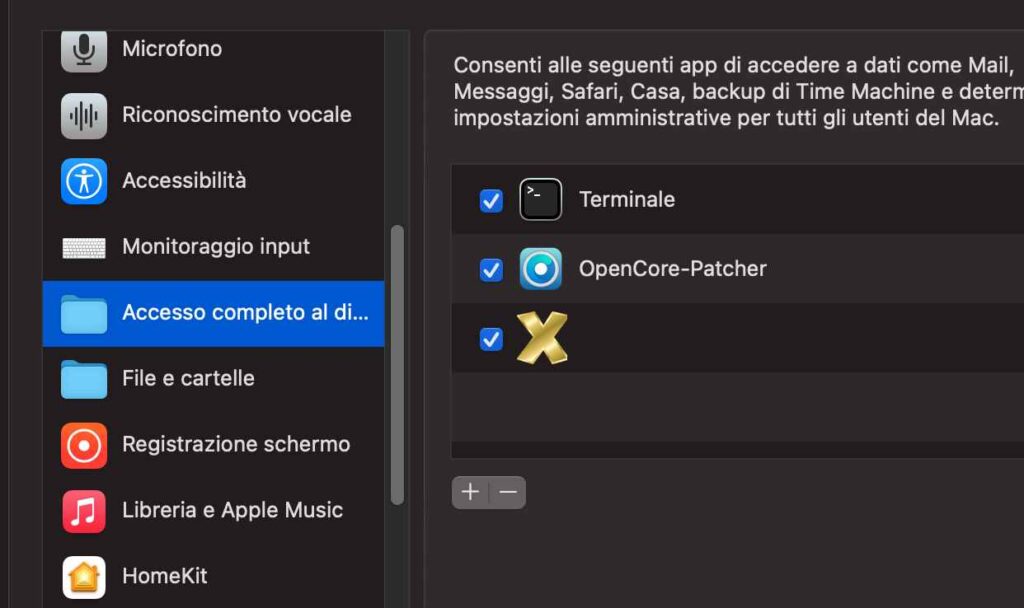 È sempre consigliato utilizzare l’ultima versione stabile disponibile per garantire compatibilità con le versioni più recenti di macOS. Una volta installato dobbiamo dare all’applicazione l’accesso completo al disco prima di forzare l’aggiornamento macOS su Mac vecchi.
